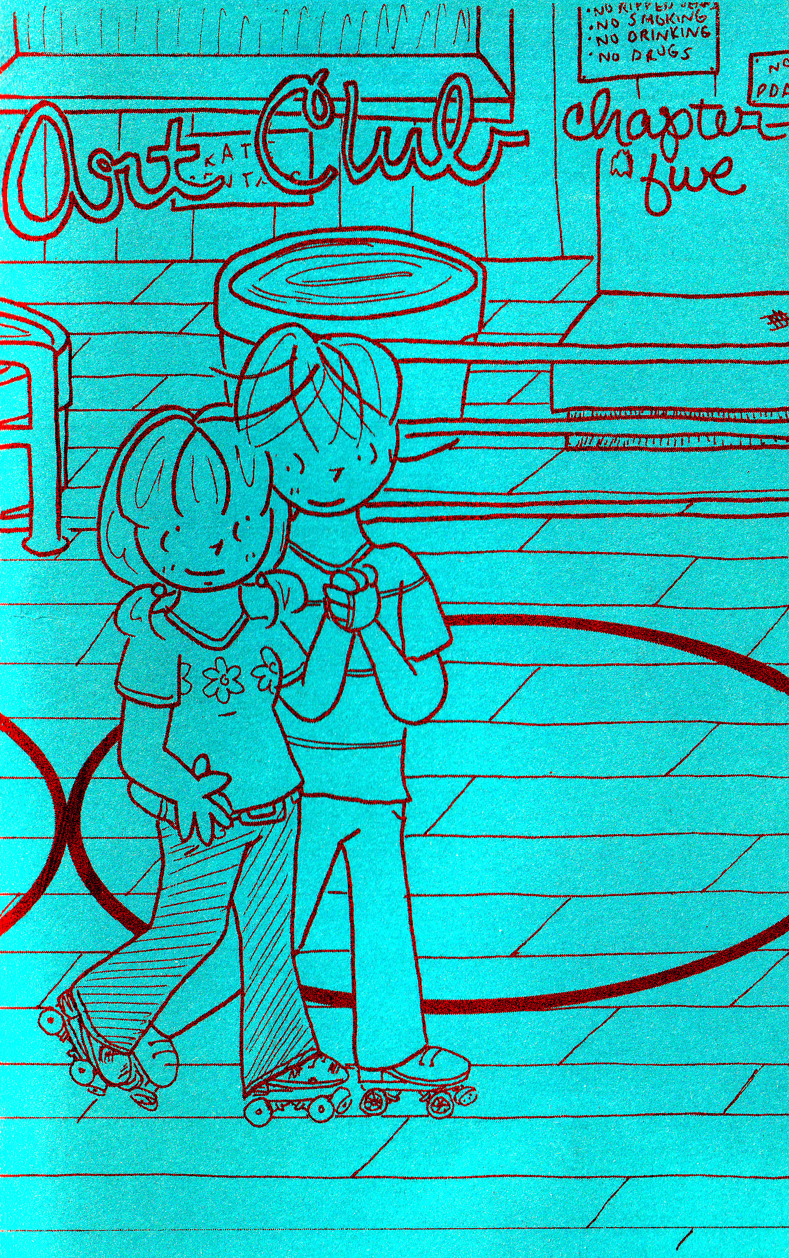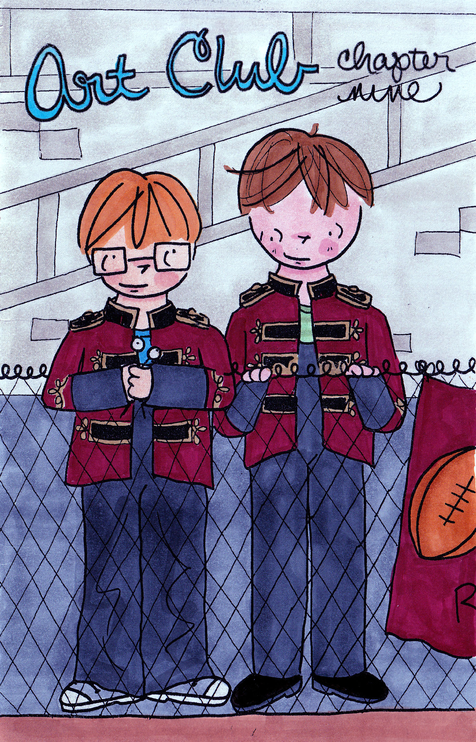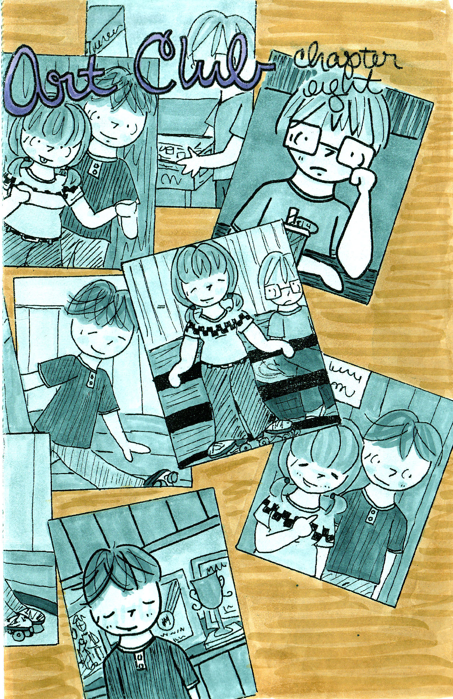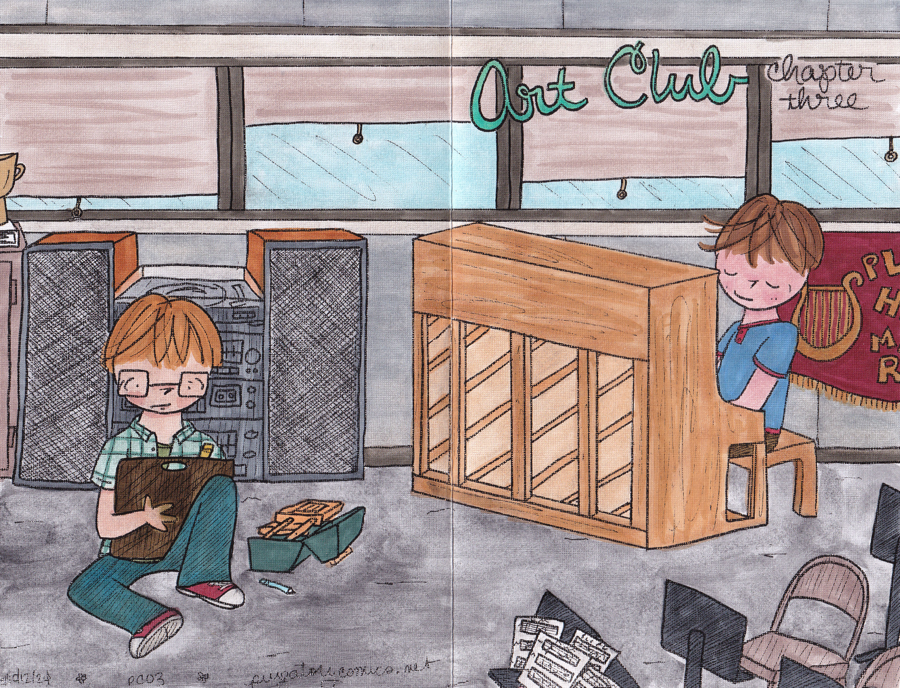 PC05 Art Club 5 Deanna and Alex's "date." This one's kinda boring, and I am so sorry. The scanner also did weird things to the color of the cover image, whoops. |