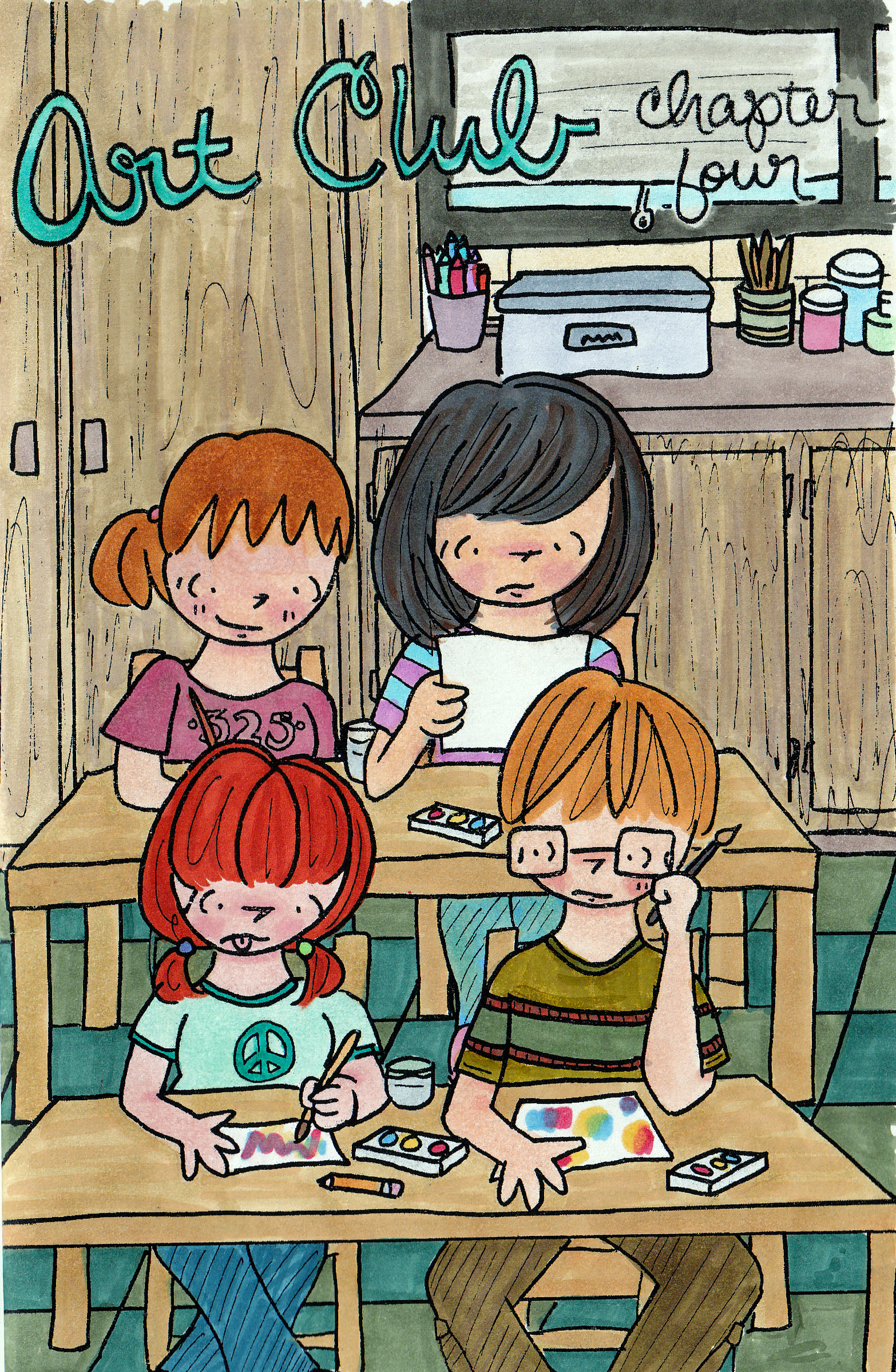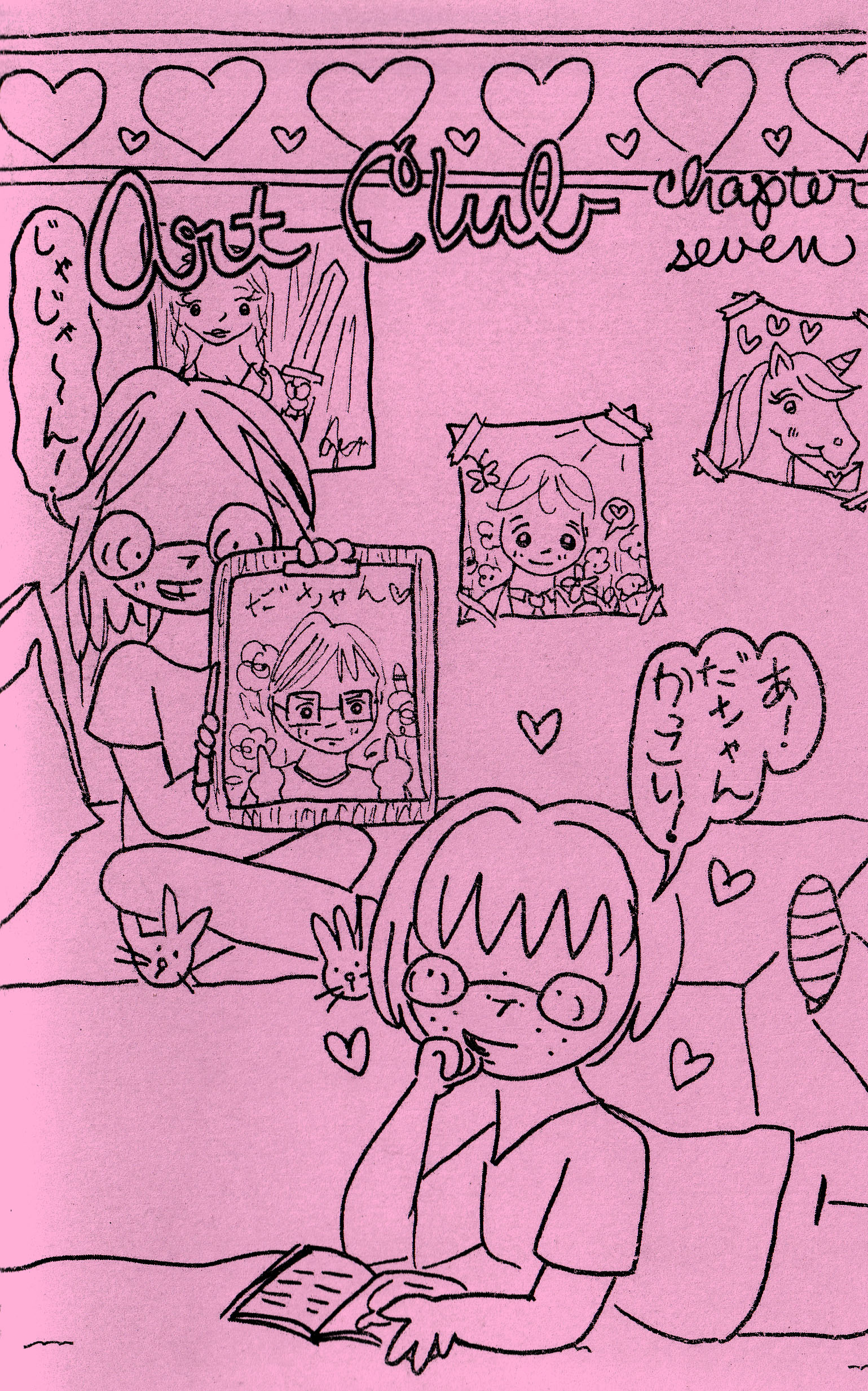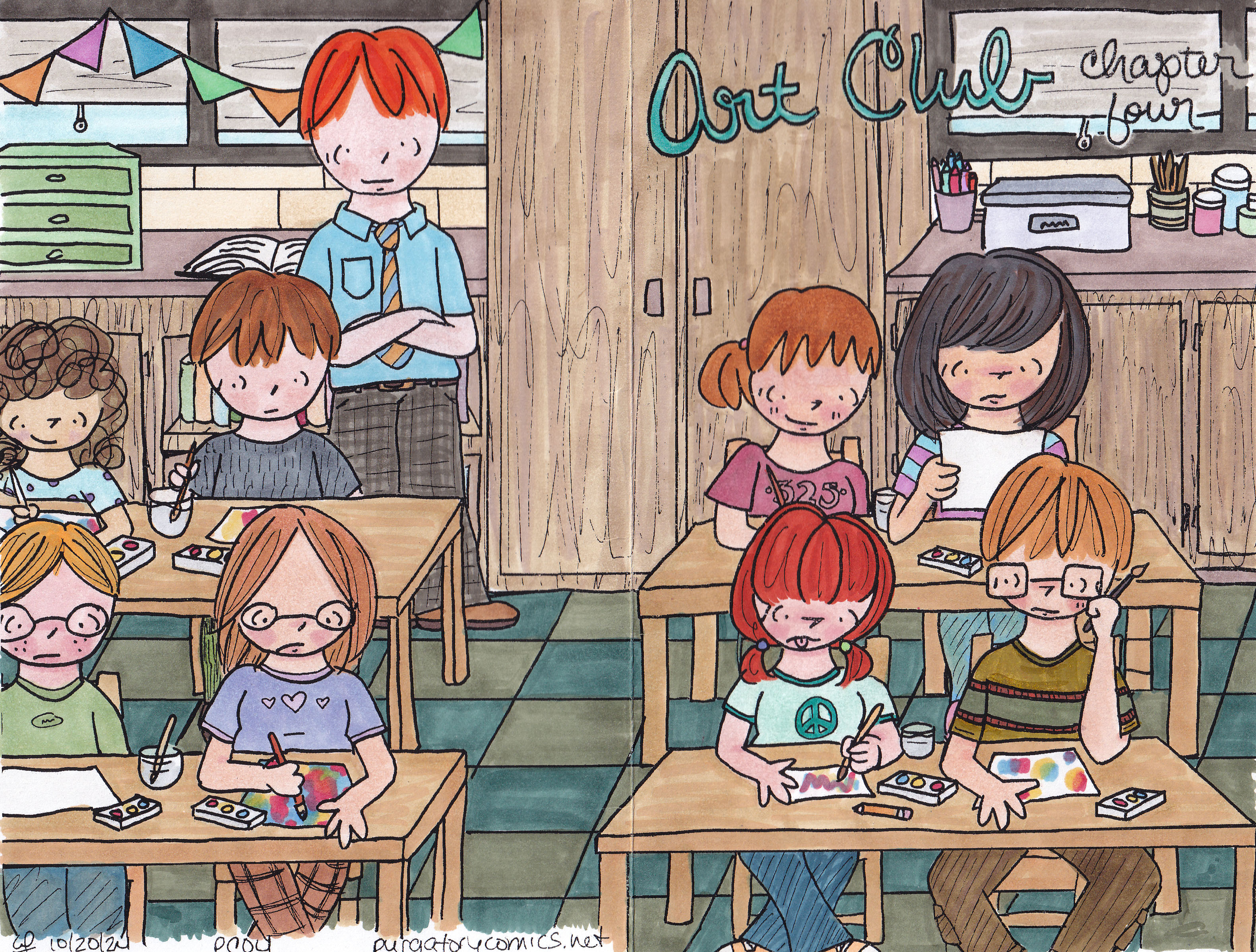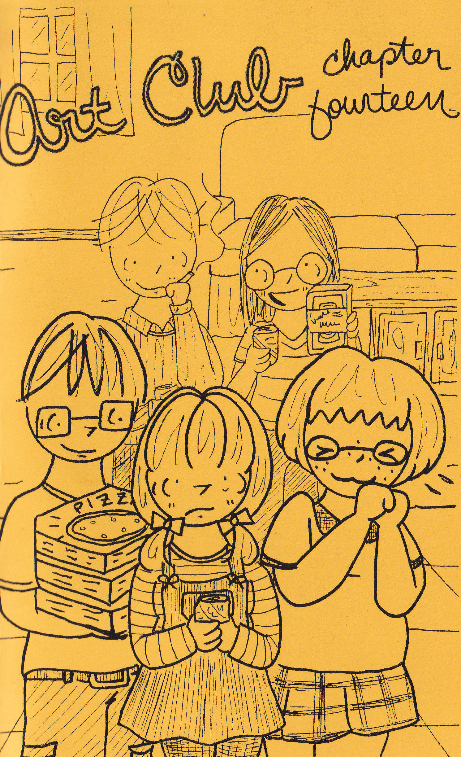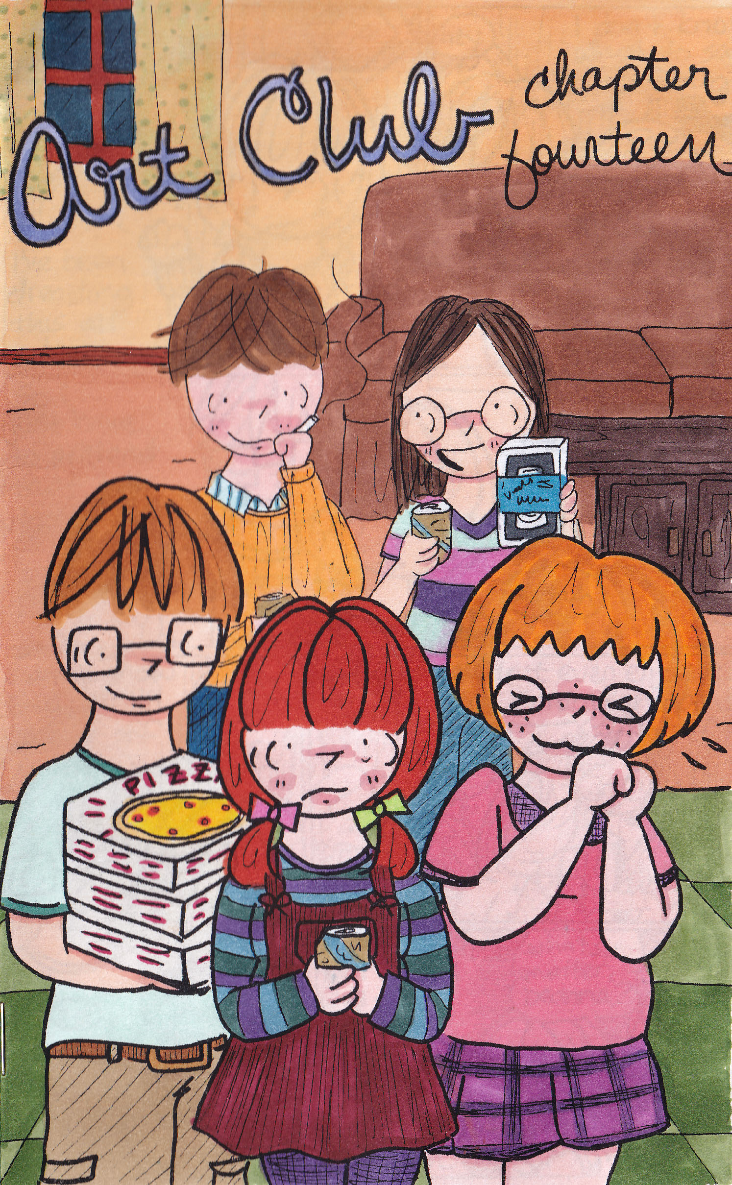 PC05 Art Club 5 Deanna and Alex's "date." This one's kinda boring, and I am so sorry. The scanner also did weird things to the color of the cover image, whoops. |