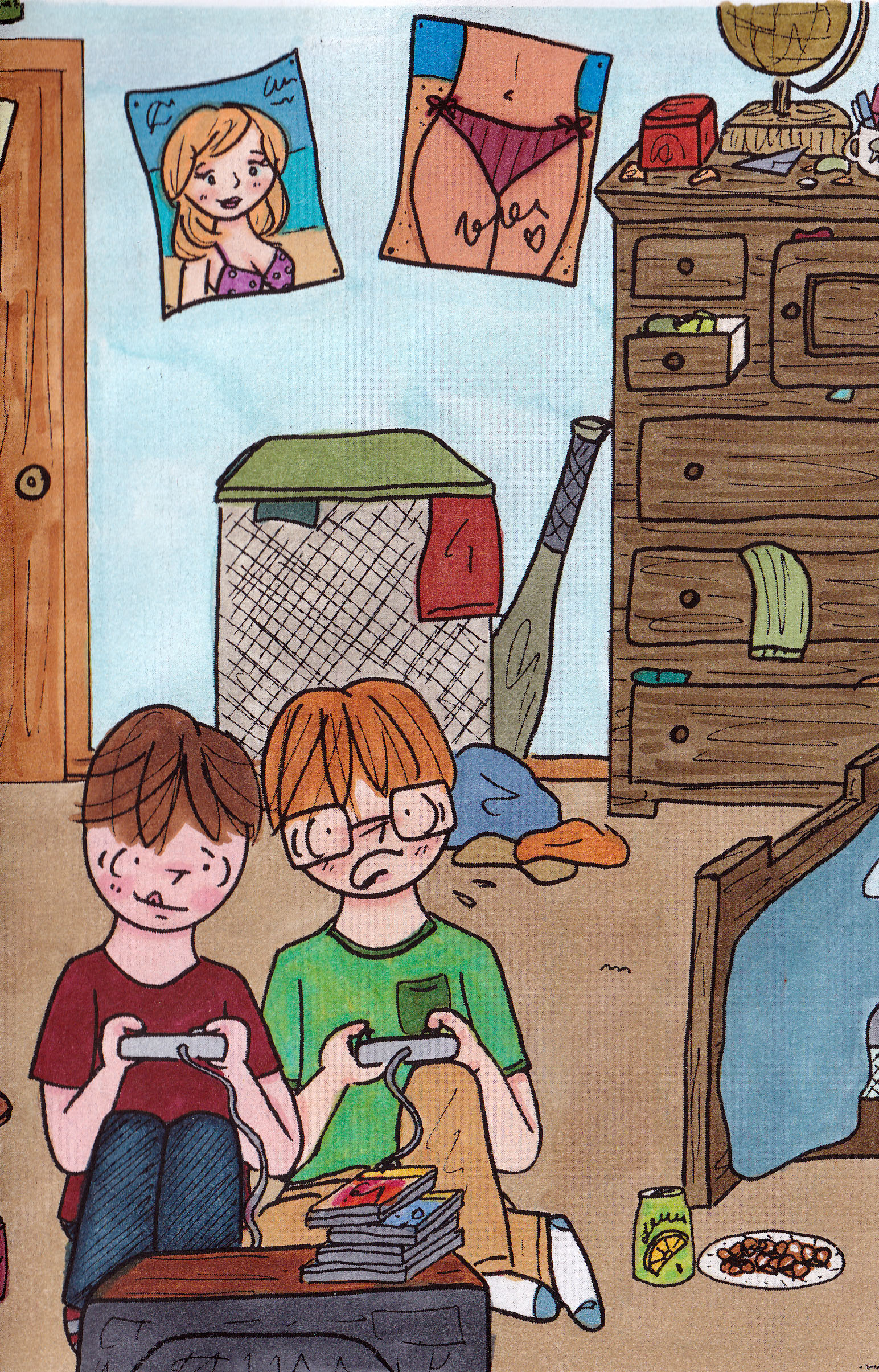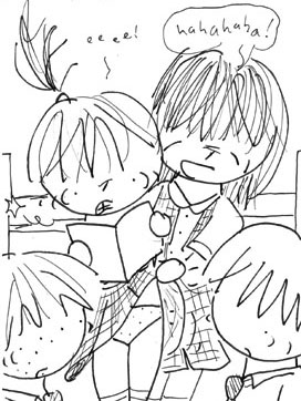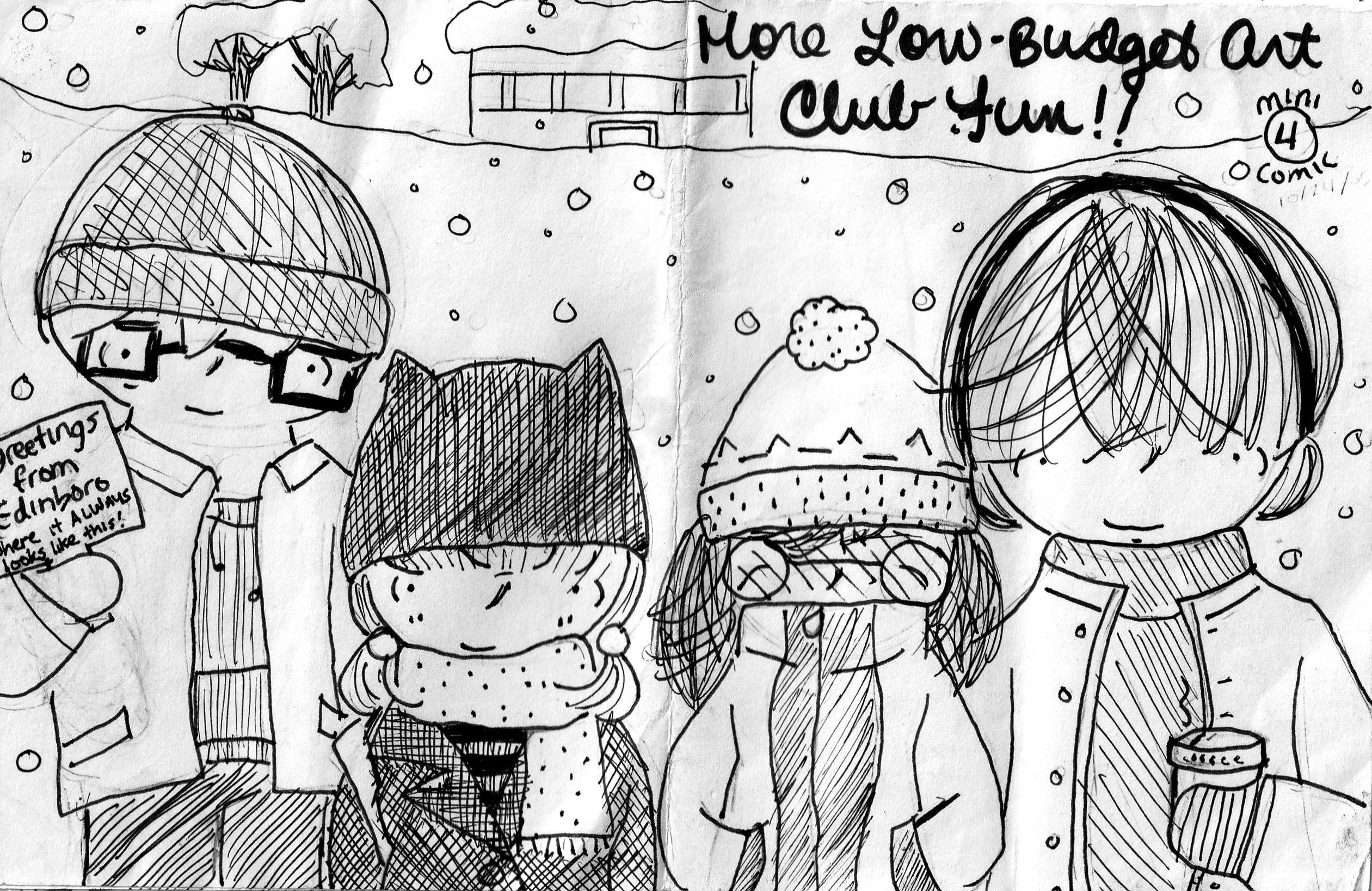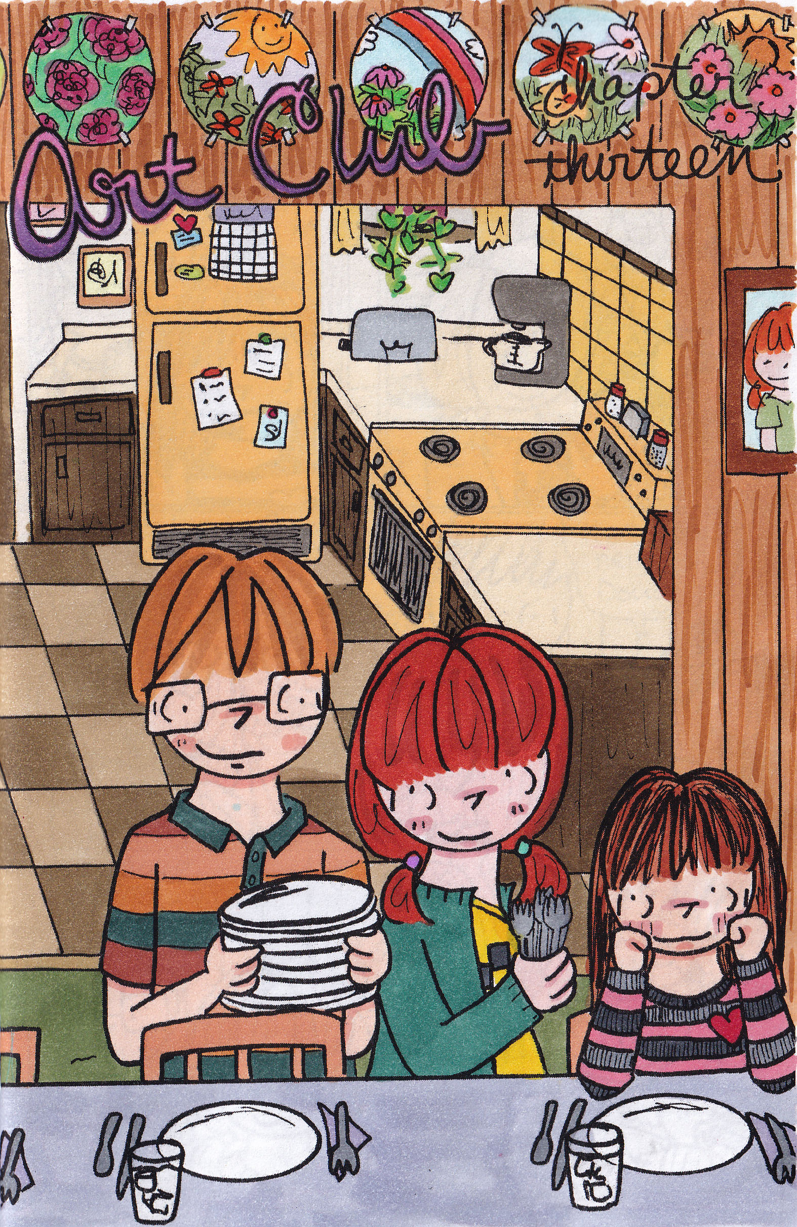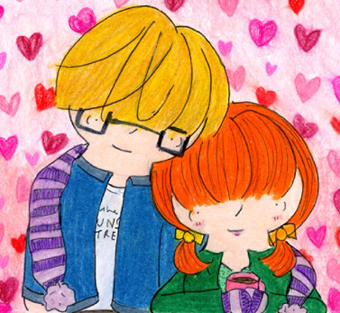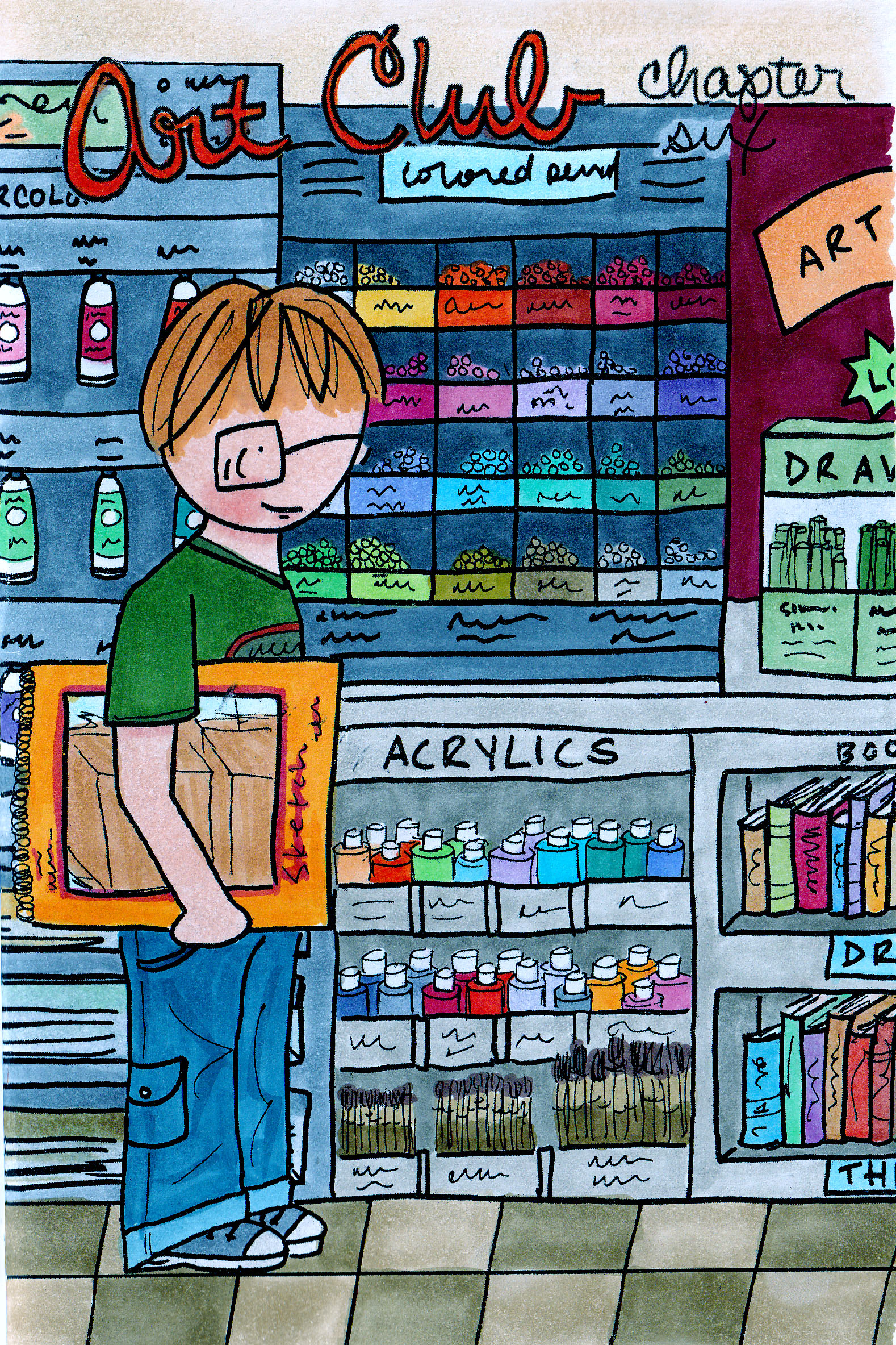 PC05 Art Club 5 Deanna and Alex's "date." This one's kinda boring, and I am so sorry. The scanner also did weird things to the color of the cover image, whoops. |