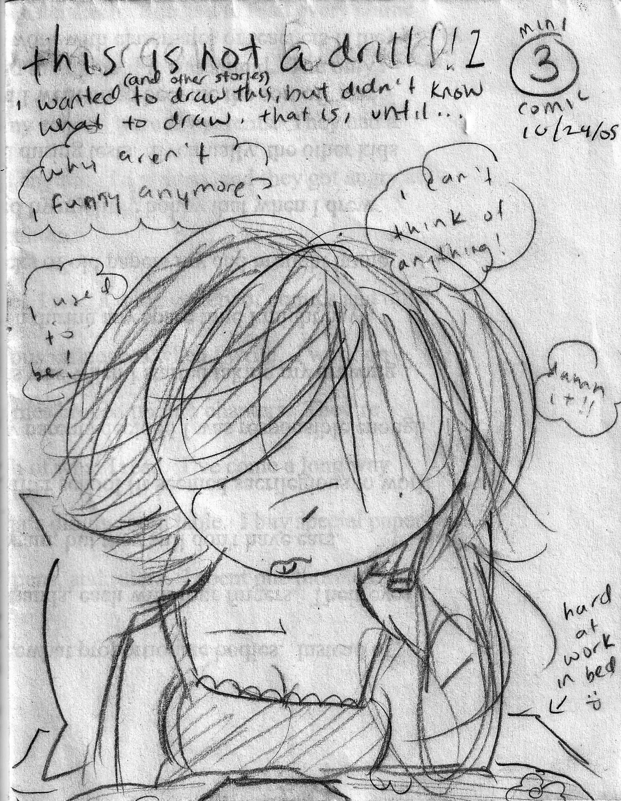 (2007) Three-page comic featured in a zine called Knicker Draw. Available online here! (PS It turns out that everything I knew about bra sizing was wrong and even when I wrote this, my bras were way, way, way too small. If you hate your boobs, no matter the size, get fitted by a professional who does NOT use the +4 method or use the calculator at abrathatfits.tk) |