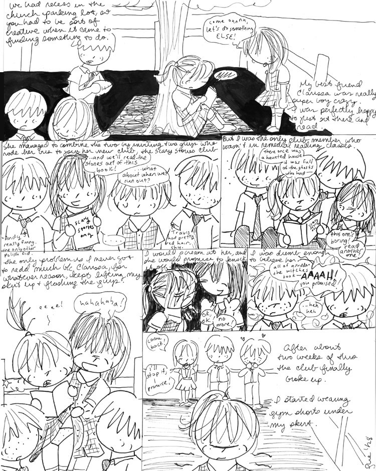 | The Scary Stories Club (2007) A personal essay that was published in issue 5 of the literary journal Chimera. Won prize for best prose. Here's the same story in comic form! |